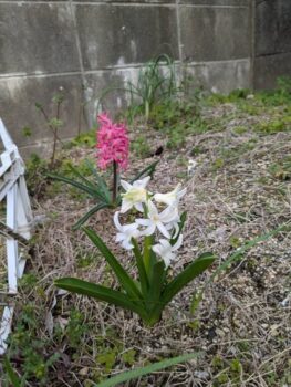 去年、水耕栽培したヒヤシンスを土に戻しました。今年綺麗に咲いてくれました。